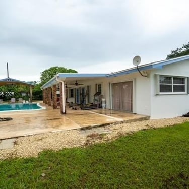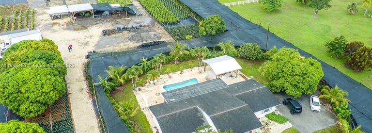 CURRENT FEATURES: LARGE OPEN KITCHEN WITH BAR, LARGE FAMILY ROOM OVERLOOKING THE POOL, DINING ROOM, LARGE LAUNDRY ROOM, AND CABANA BATH. THE MASTER SUITE IS LARGE WITH A SITTING AREA. PROPERTY IS FULLY IRRIGATED AND INCOME-RATE. The former pasture is planted with exotic plants and features a four-stall barn with two storage/office spaces. It is fenced and gated with a spacious layout. Motivated Seller.